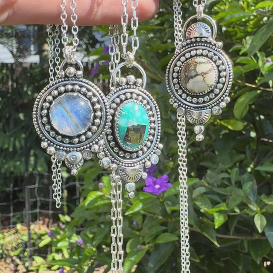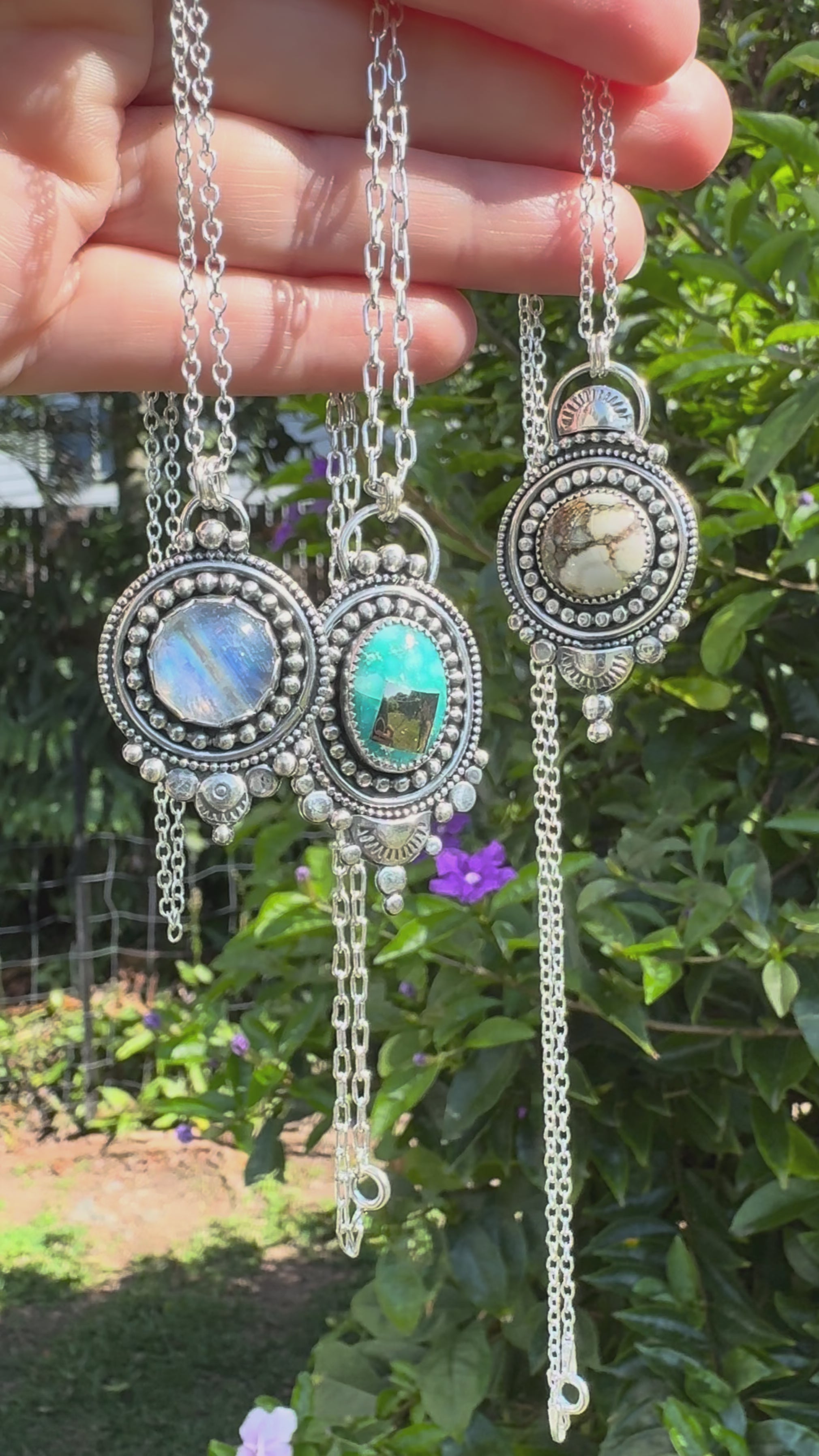 Many hours of work have gone into creating all the details which are handcrafted from scratch from sterling silver. The pendant is suspended from a long link sterling silver chain which is 18" long.