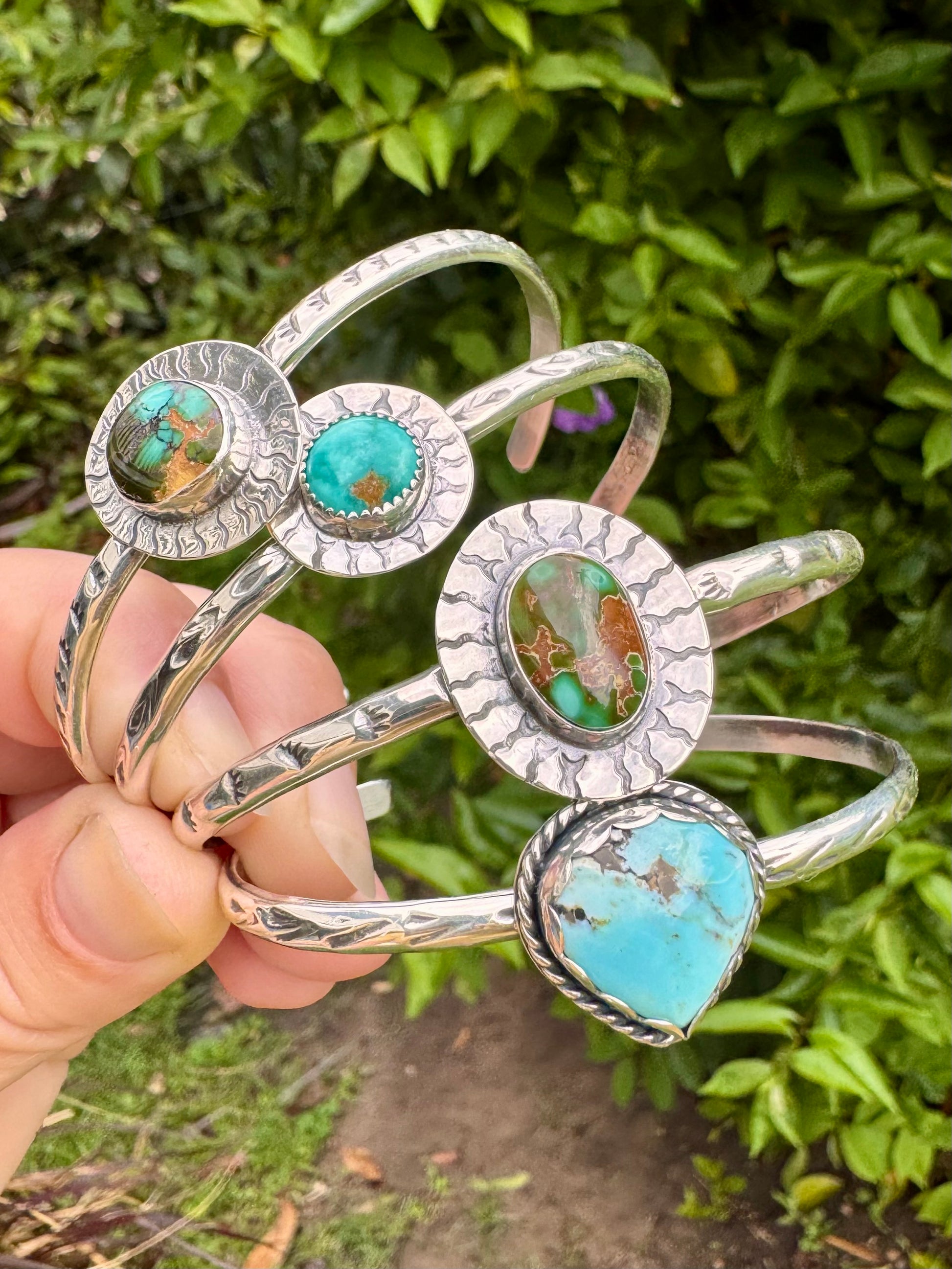 You will love this solid silver cuff bracelet with a very unique turquoise stone. Handmade with love, the silver has been carefully stamped by hand to create a one-of-a-kind piece of jewellery that you will treasure forever.