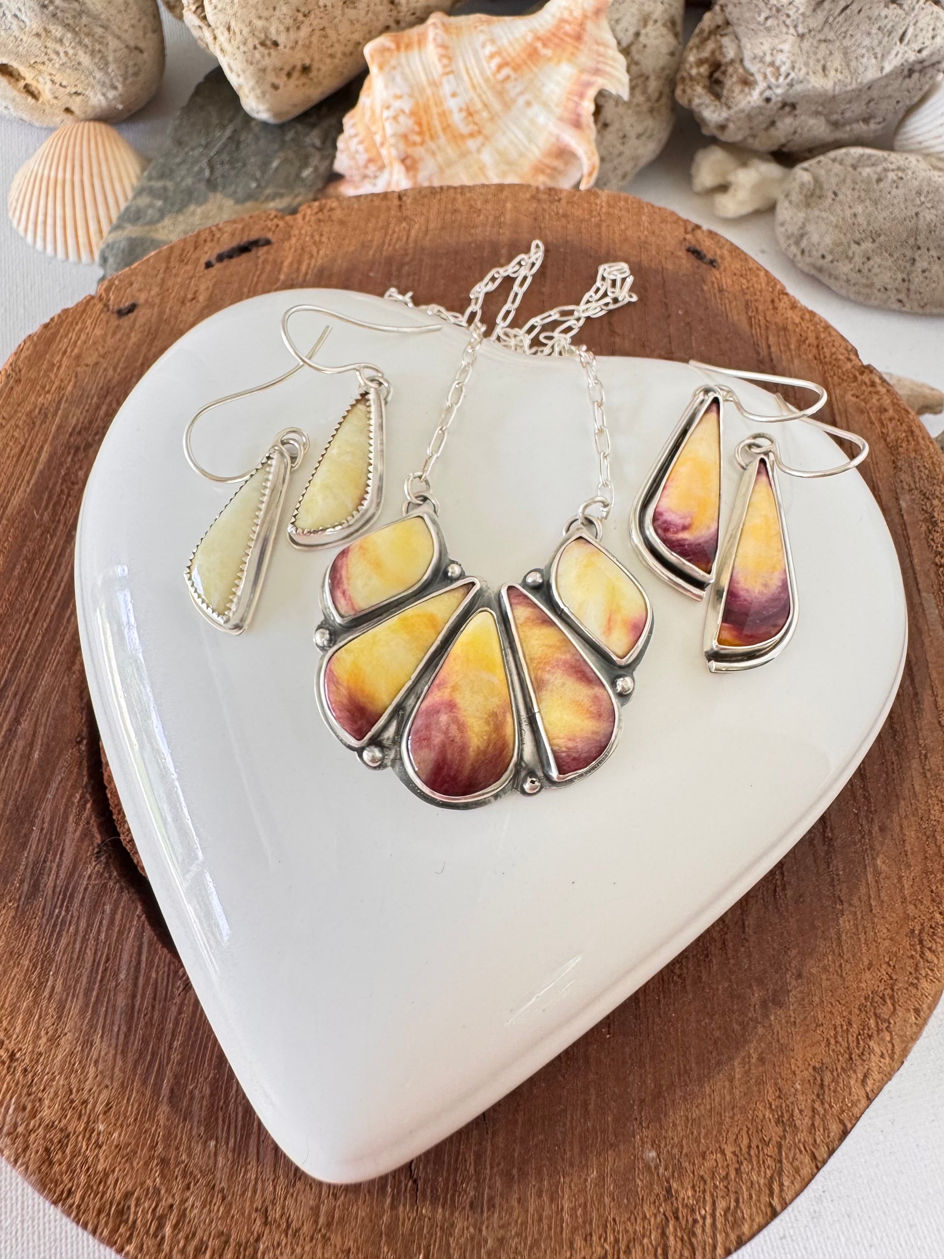 The colour of these stones is a beautiful pale yellow-purple which is unlike any I've seen before. Spiny Oyster most commonly comes in orange, red, and purple. Although very rare it can be found in a yellow hue too.