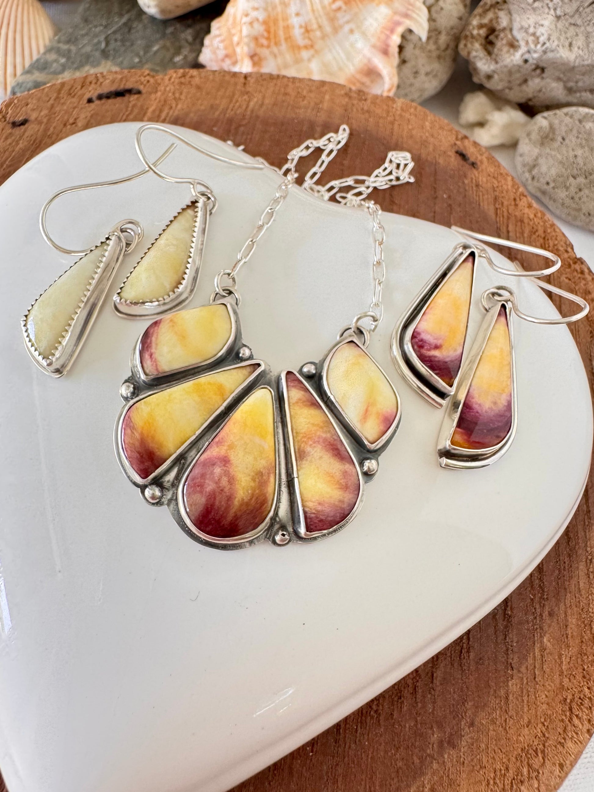 The colour of these stones is a beautiful pale yellow-purple which is unlike any I've seen before. Spiny Oyster most commonly comes in orange, red, and purple. Although very rare it can be found in a yellow hue too.